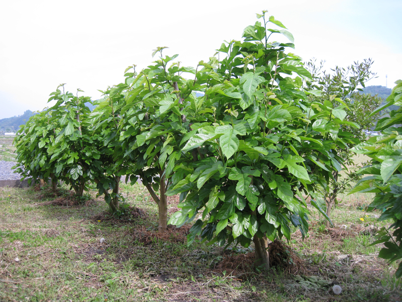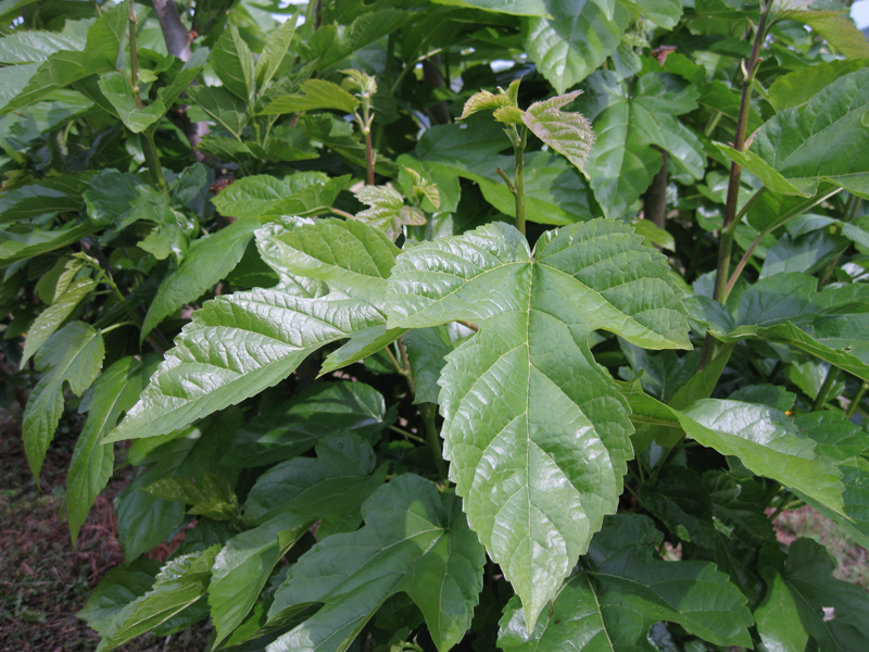 弊社の桑の木には色鮮やかで大きな葉が広がり始めました。