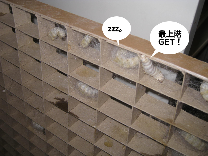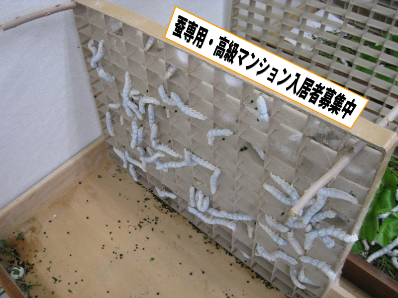 なんと、かいこの飼育箱の横にマンションが建設されていたのでした。