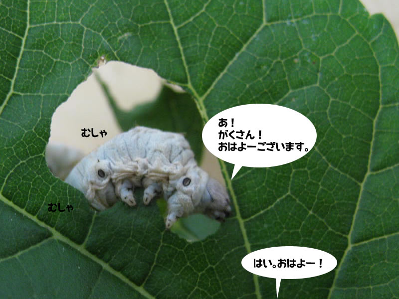 すると、そこには朝摘まれたばかりのたくさんの桑の葉に囲まれ