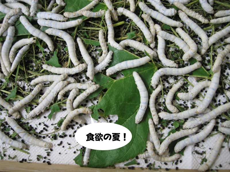 大きな桑の葉を与えてもあっという間に食い尽くされちゃう。恐ろしき食欲です。