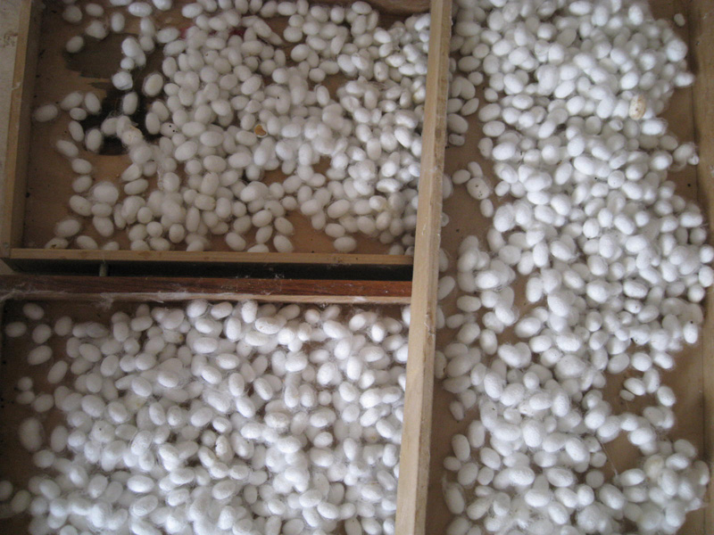 僅かなかいこを残し、お盆休みの間にほぼ全てのかいこが繭になりました。