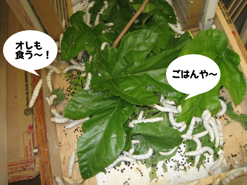 かいこの引っ越しは桑の葉がない時・・ではなく食事中に行います。
